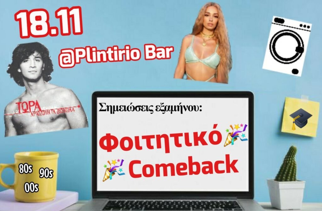 Πέμπτη 18/11 ανοίγει τις πόρτες του για ένα φοιτητικό comeback με όλες τις αγαπημένες μας 80s-90s-00s μουσικές επιτυχίες!