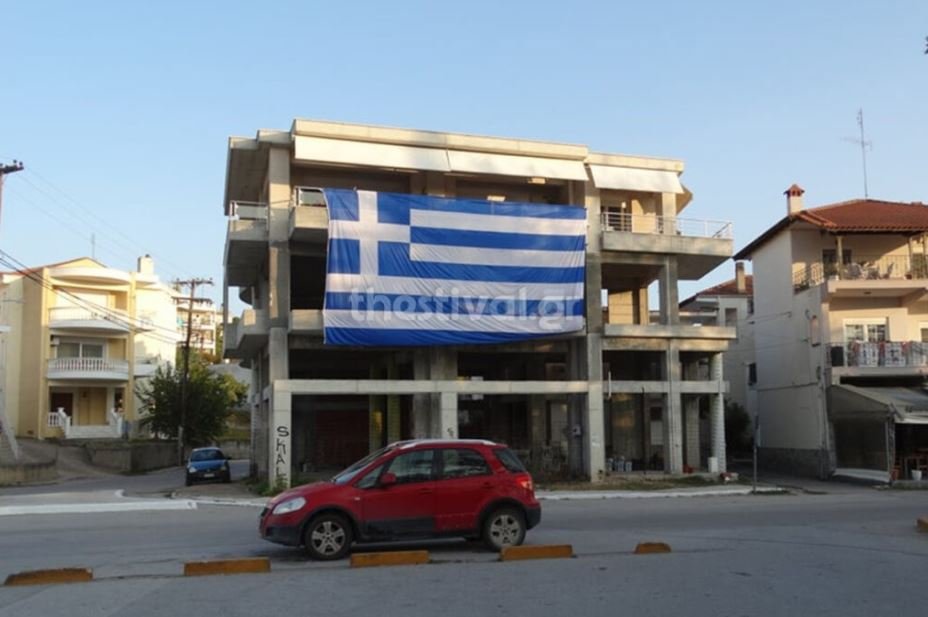 Ένας κάτοικος της Επανομής, στο πνεύμα των εορτασμών της επετείου του “ΟΧΙ”, κρέμασε από το μπαλκόνι του σπιτιού του μια τεράστια ελληνική σημαία, η επιφάνεια της οποίας είναι περίπου 20 τ.μ.!
